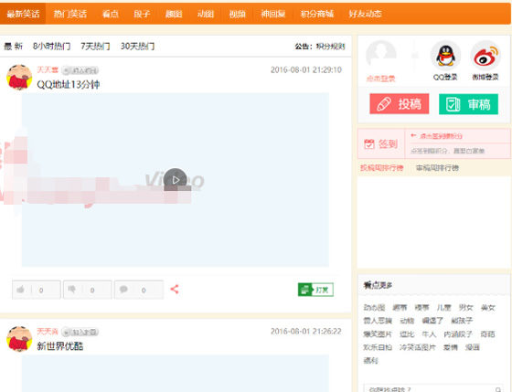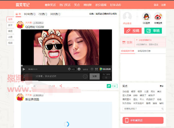 内涵段子等笑话网站系统源码,主要是基于ThinkPHP3.2.3框架开发仿糗事百科笑话系统PHP源码,包含6套PC端模板,主要仿快乐麻花、臭事百科、内涵段子笑话网站的模板,后台可以一键切换模板,该系统主要包含PC端系统、WAP手机端、积分商城、QQ/微博发登录。