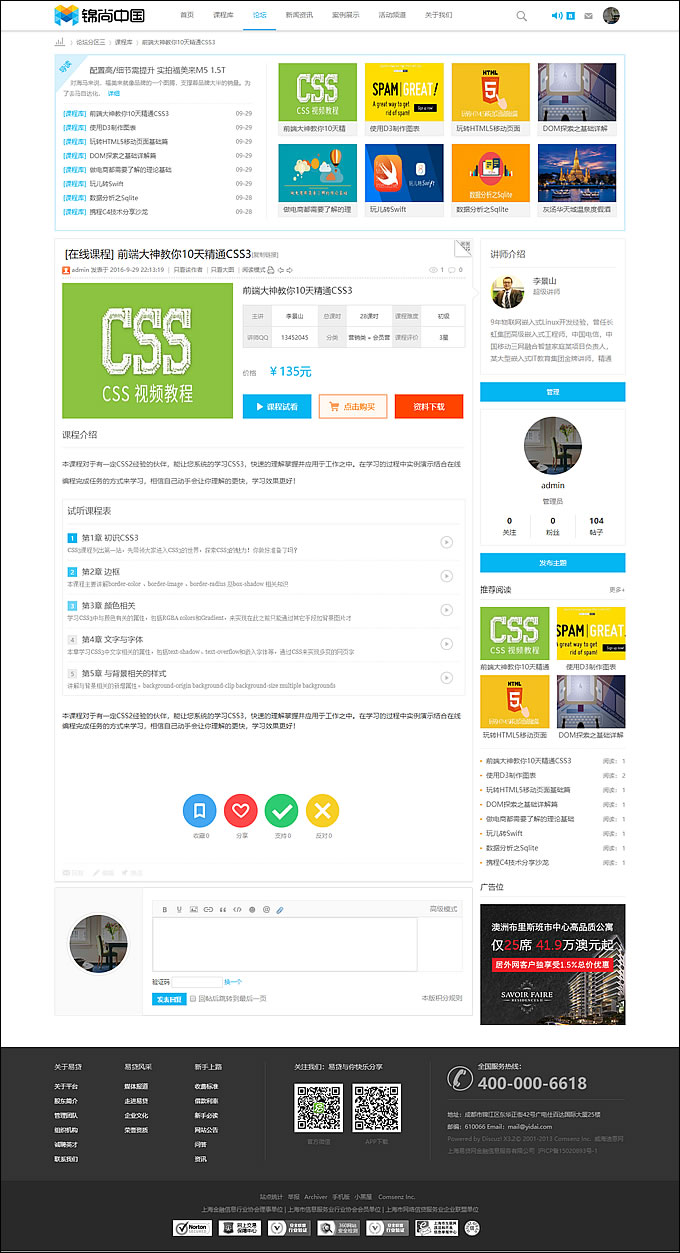 迪恩在线教育课程/职业培训3商业版源码,discuz内核整站源码带数据,互动型论坛源码!!! discuz的模板非常大气,适合各种在线课程网站! 下载地址 下载地址已转移到新版网站,请点击左上角-首页,在新版网站搜索此套源码的标题进行下载。
