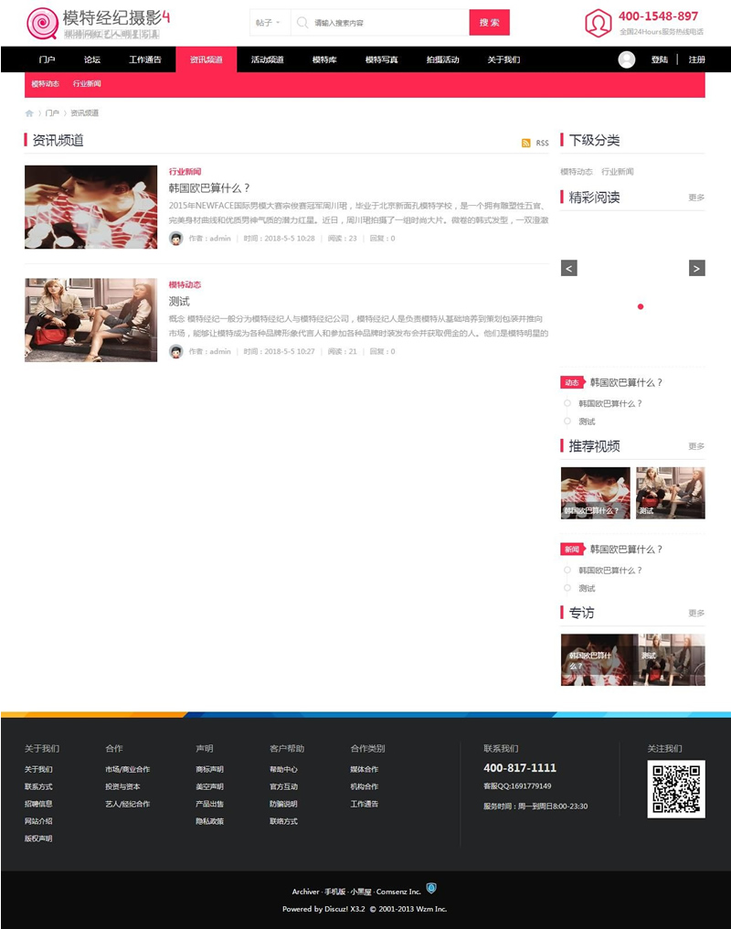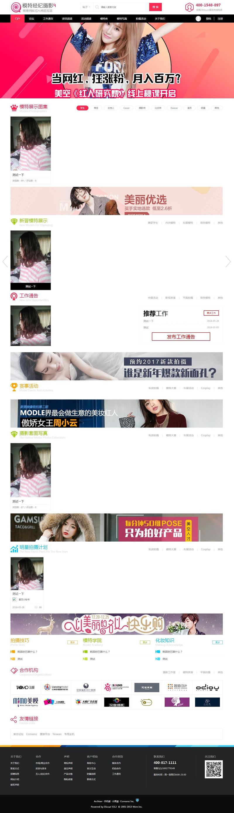 discuz整站带数据 模特经纪摄影4 商业版 模特时尚门户论坛网站 安装说明:先按照正常顺序安装discuz,安装完成后在后台的站长里面找到数据库,恢复数据库 下载地址 下载地址已转移到新版网站,请点击左上角-首页,在新版网站搜索此套源码的标题进行下载。