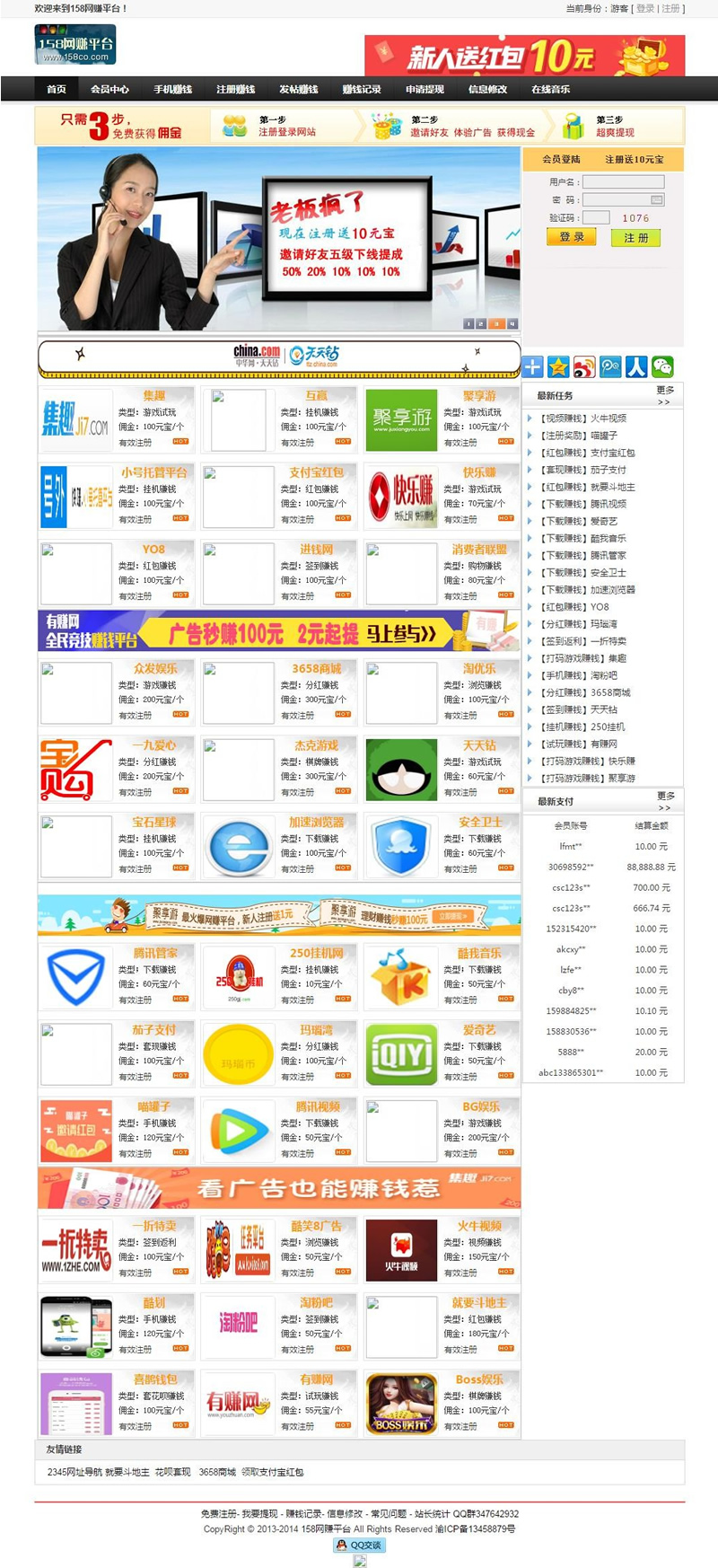 158兼职赚钱平台源码,天下兼职源码,网络兼职源码,网上兼职源码