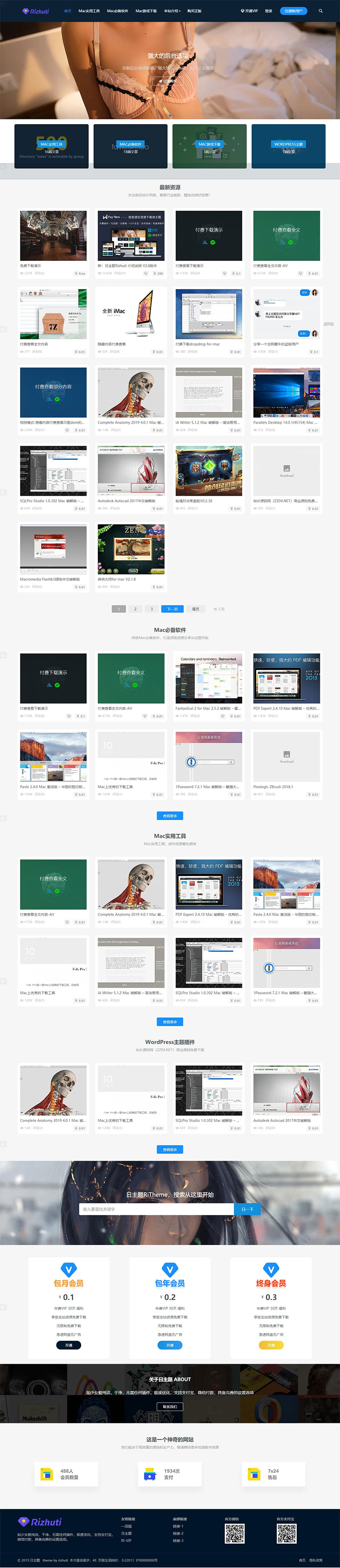 wordpress日主题rizhuti3.1最新版,破解授权,修复会员不可下载的问题,修复支付成功不回调的问题!