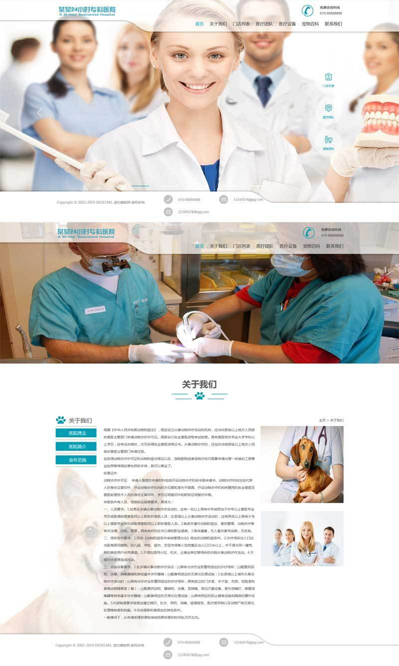 (自适应手机移动端)简洁大气响应式宠物医院网站源码 织梦dedecms模板