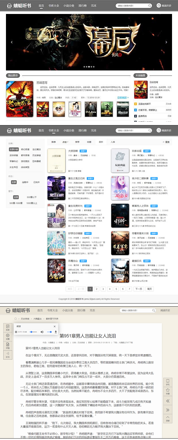 PTCms小说系统自动在线采集,小说聚合网站源码带手机端,4套模板,可以在线听小说!带4套模板,带10个采集规则!!!! php5.6+Mysql 下载地址 下载地址已转移到新版网站,请点击左上角-首页,在新版网站搜索此套源码的标题进行下载。