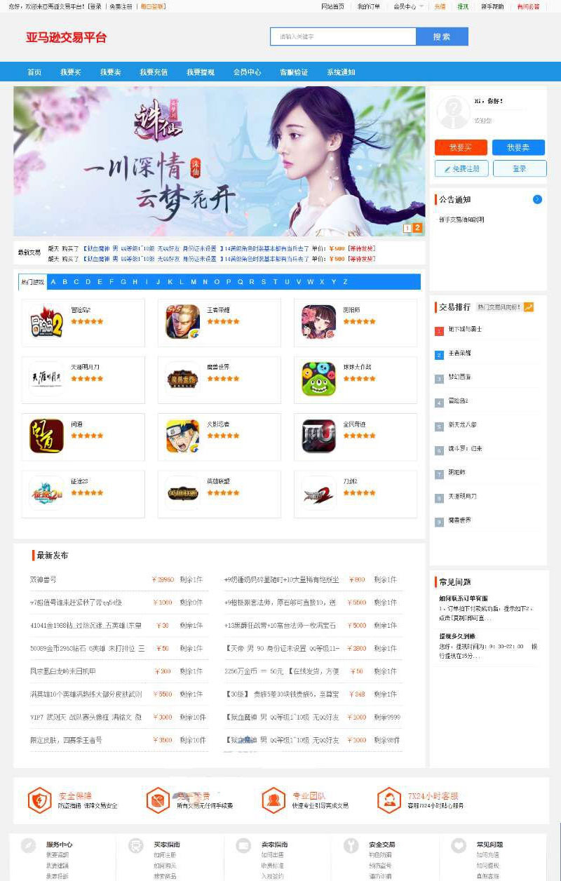 PHP友价商城手游游戏账号交易平台源码
