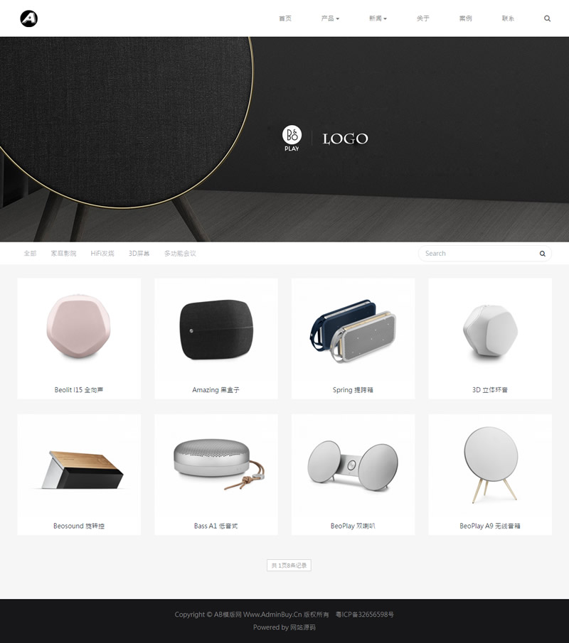 2、效果相当的炫酷,相当简洁大气高端,模板简单,全部已数据调用,只需后台修改栏目名称即可