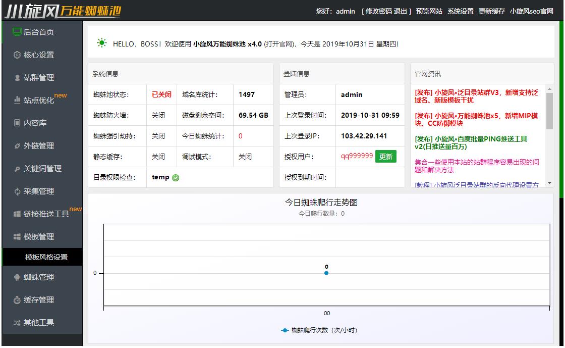 小旋风蜘蛛池站群系统源码X4版本(原小霸王蜘蛛池)繁体+SSL+熊掌自推送+转码蜘蛛池站群网站快排
