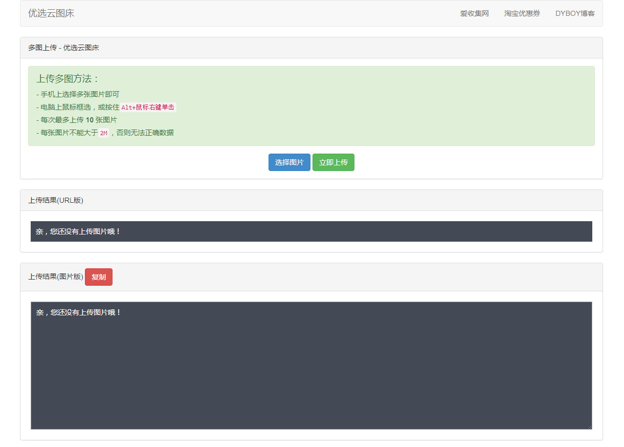这款图床支持超链接模式、HTML文本模式以及多图批量上传!