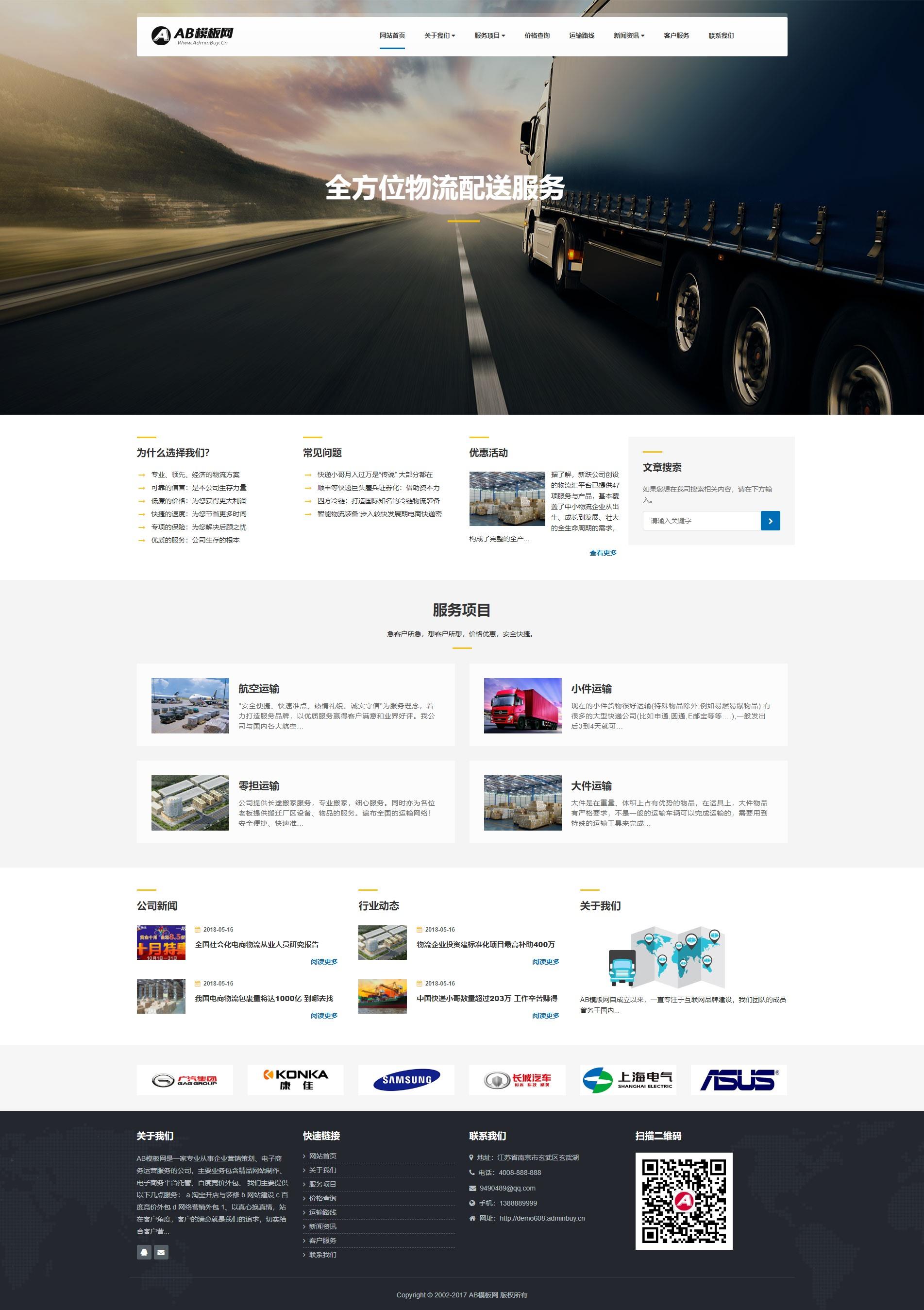 快递网站源码_物流网站模板源码[带手机版数据同步]采用一库两站简洁方便管理后台,一个后台管理两网站,电脑版+手机版 1、网站手工DIV+css,代码精简,首页排版整洁大方、布局合理、利于SEO、图文并茂、静态HTML; 2、程序自带XML地图,有利于搜索引擎快速收录和排名 下载地址 下载地址已转移到新版网站,请点击左上角-首页,在新版网站搜索此套源码的标题进行下载。