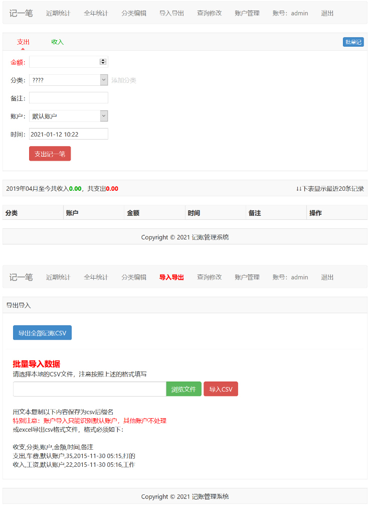 个人在线记帐管理系统,让你对自己的开支了如指掌,图形化界面操作更简单,非常适合个人或者家庭记账,UI设计简洁漂亮,操作简单直观,很容易上手!