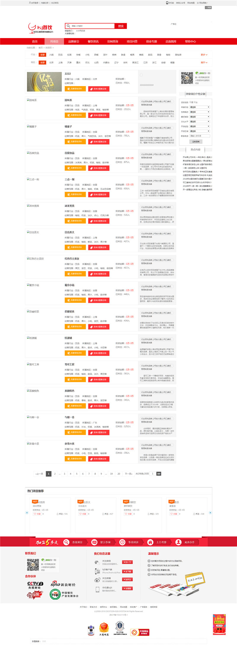 Destoon7.0红色大气餐饮行业项目招商加盟网站源码 带手机版