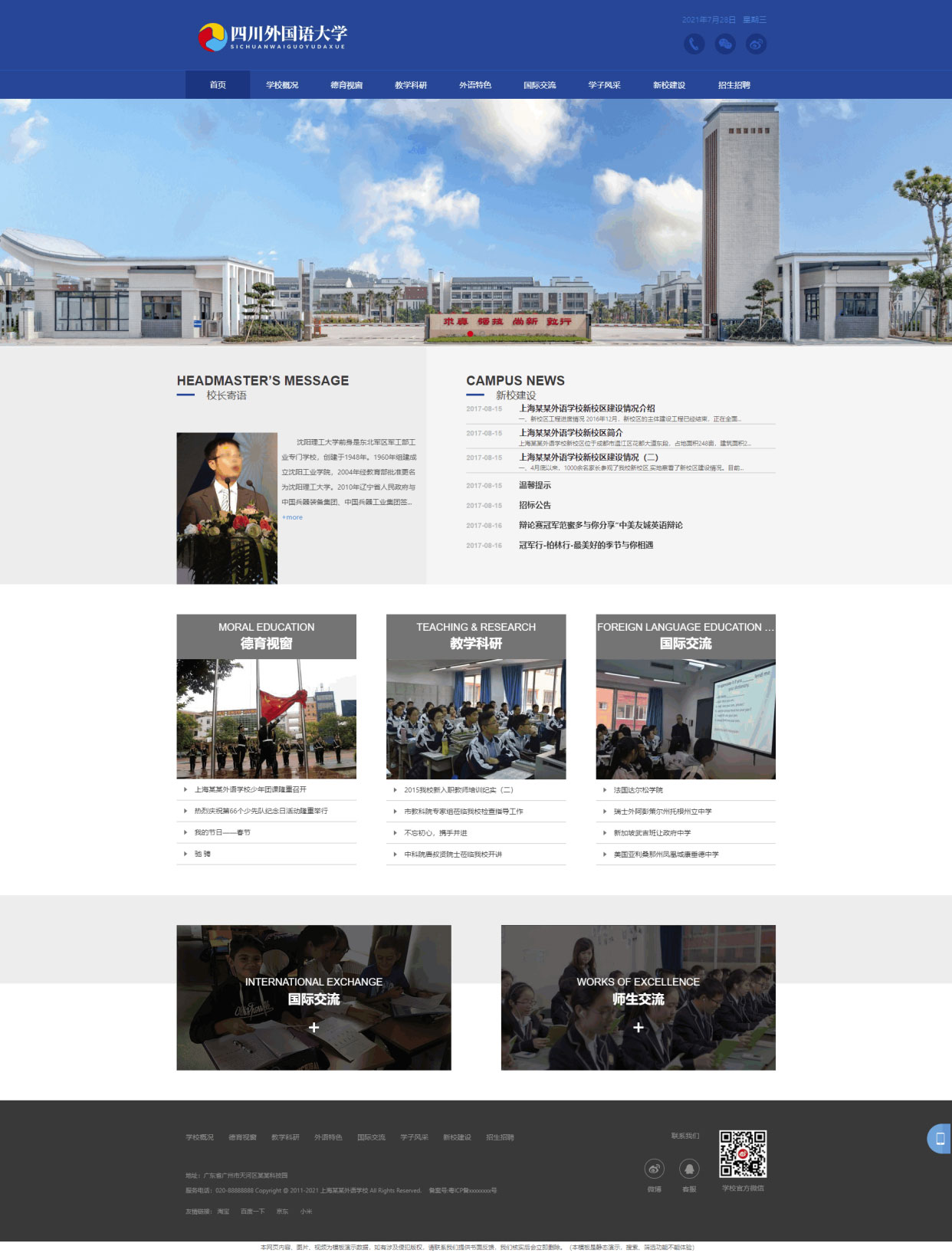 > 蓝色简洁响应式外国语大学学校学院教育网站源码 自适应手机端 ThinkPHP5内核