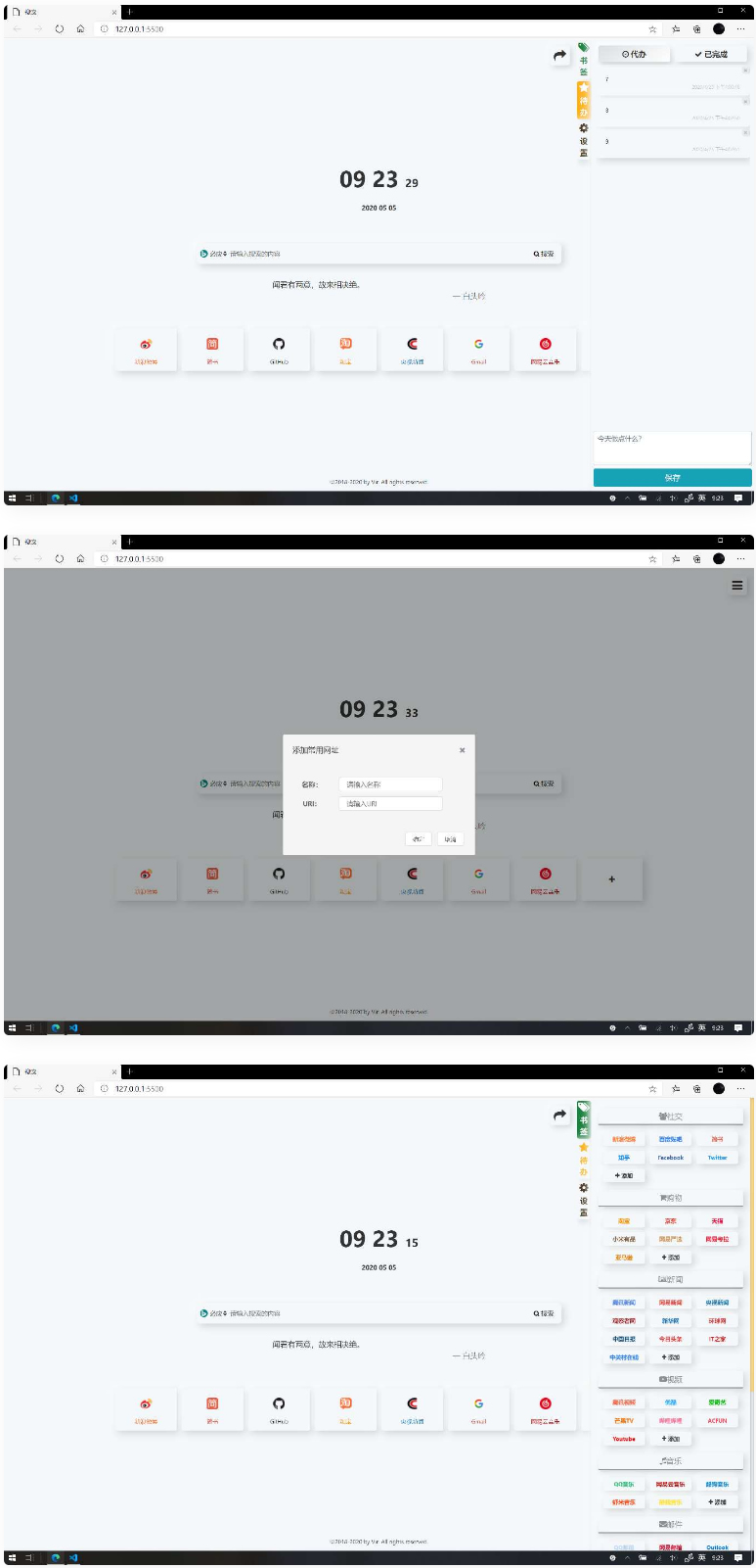 简洁的浏览器主页,采用原生js编写,可选择不同的搜索引擎,展示网址收藏,查看天气,本地设置,无聊时玩玩小游戏以及小工具合集...