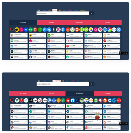 源码分为四个页面:设计师导航、运营导航、程序员导航、产品导航
