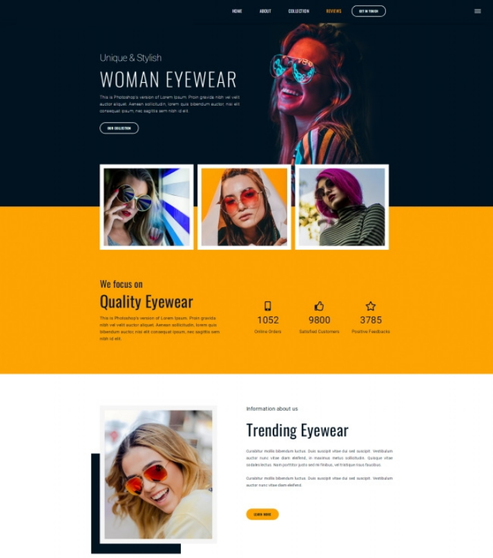 时尚女士墨镜品牌宣传网站模板是一款适合时尚女士墨镜品牌宣传介绍服务网站模板下载。提示:本模板调用到谷歌字体库,可能会出现页面打开比较缓慢。 下载地址 下载地址已转移到新版网站,请点击左上角-首页,在新版网站搜索此套源码的标题进行下载。