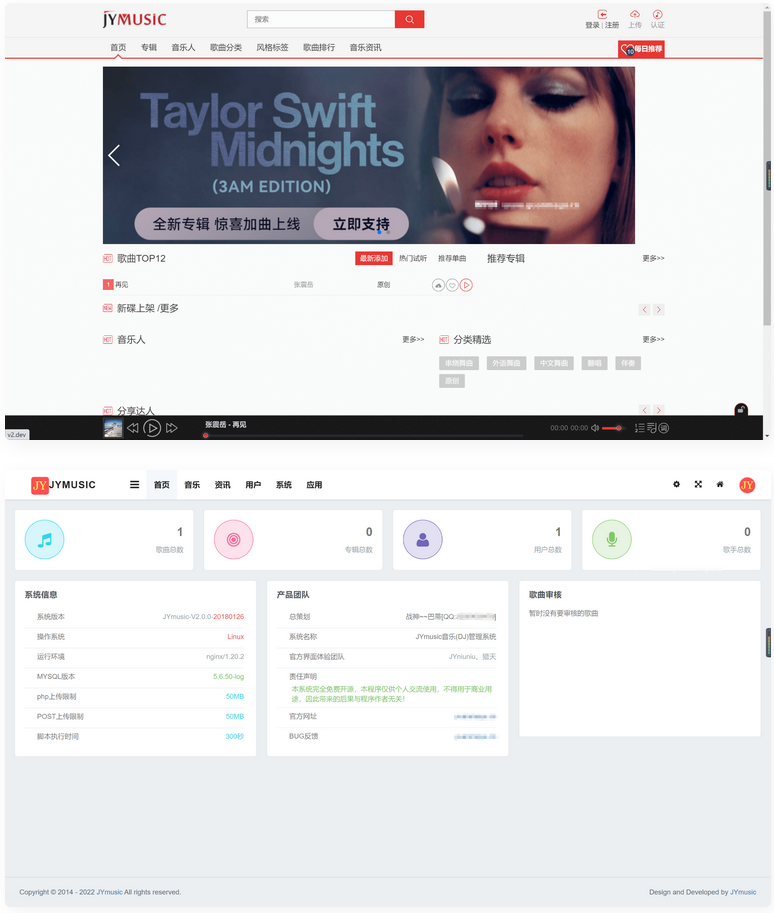 完全免费,稳定,易于扩展且具有超强大负载能力,完全可以满足音乐、DJ、音乐分享、原创音乐、音乐资讯站等使用