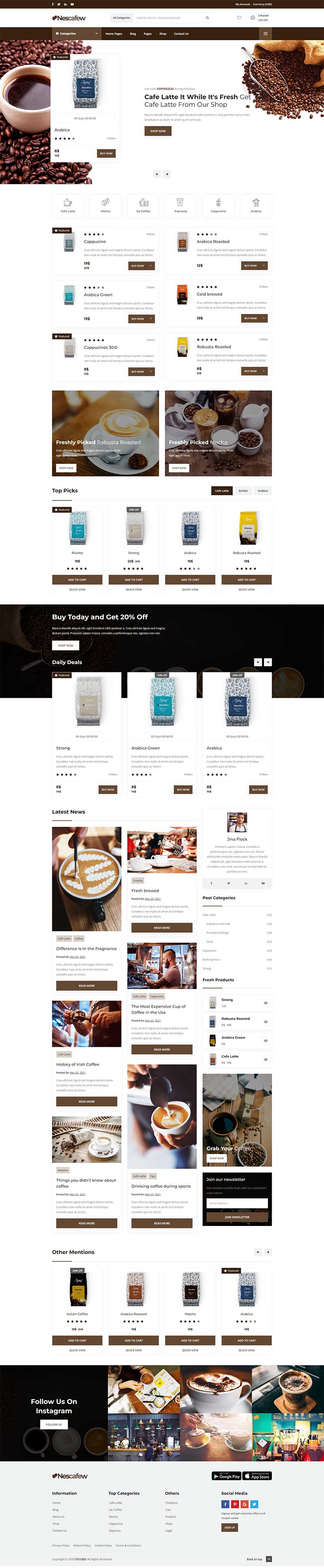 咖啡店铺电商网站模板
