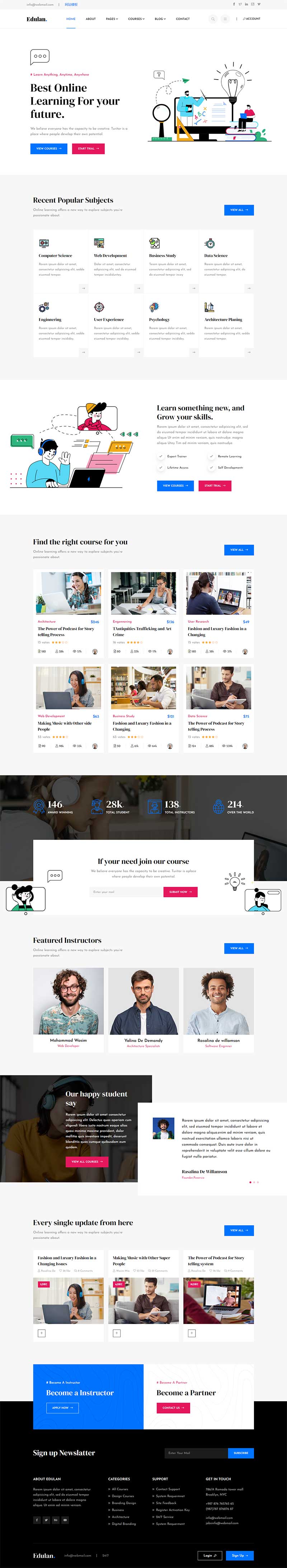 一款简洁响应式的课程教育,在线学习网站HTML模板。你可以建立一个LMS教育网站,导师LMS,设计课程,商业课程,培训中心,课程中心,学院,学院,大学,学校或博客网站与Edulan。定制的可能性是无限的。总共包含16个HTML文件。这个设计很有创意和独特性,也很容易定制和使用。 下载地址 下载地址已转移到新版网站,请点击左上角-首页,在新版网站搜索此套源码的标题进行下载。