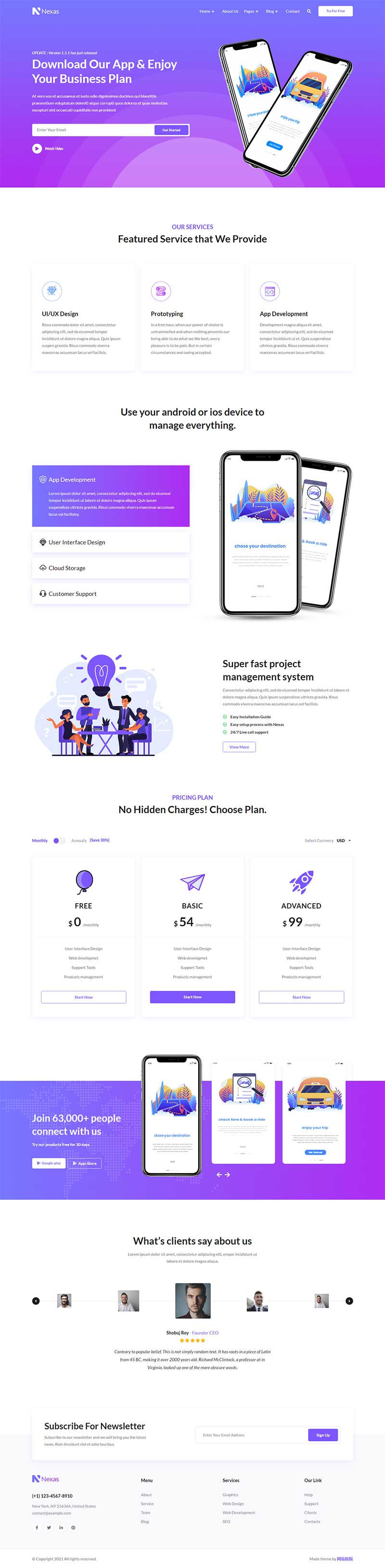 一款蓝色渐变风格的app应用软件介绍,IT软件科技公司官网HTML模板。它适用于所有创意的科技公司网站。如Saas登陆、软件登陆、创意代理、企业业务、创意工作室、搜索引擎优化业务和现代商务网站。所有HTML文件都是100响应的&W3C HTML验证。代码以良好的格式和文档化的文件结构进行注释。