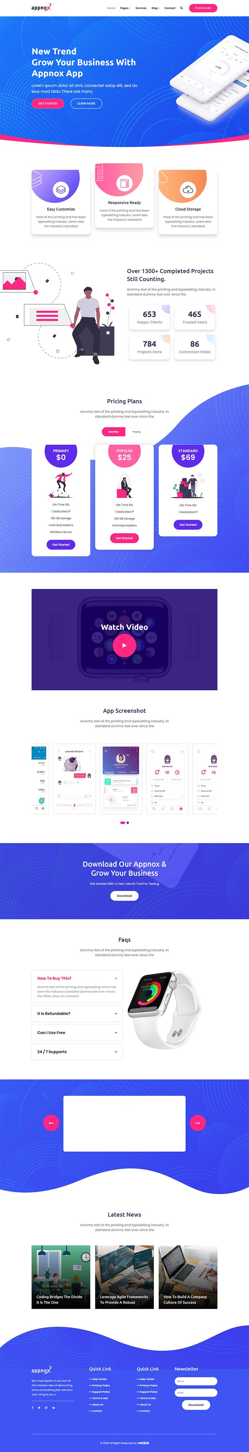 一款手机app应用程序软件官网HTML5模板。可用于:产品介绍,软件功能展示网站。你可以很容易地编辑这个HTML5模板,它是100响应式布局可定制。所有代码均可编辑。这个HTML5模板非常适合转换成WordPress、织梦和其他CMS。包含8个页面。您可以轻松编辑此模板并在几分钟内替换图片。
