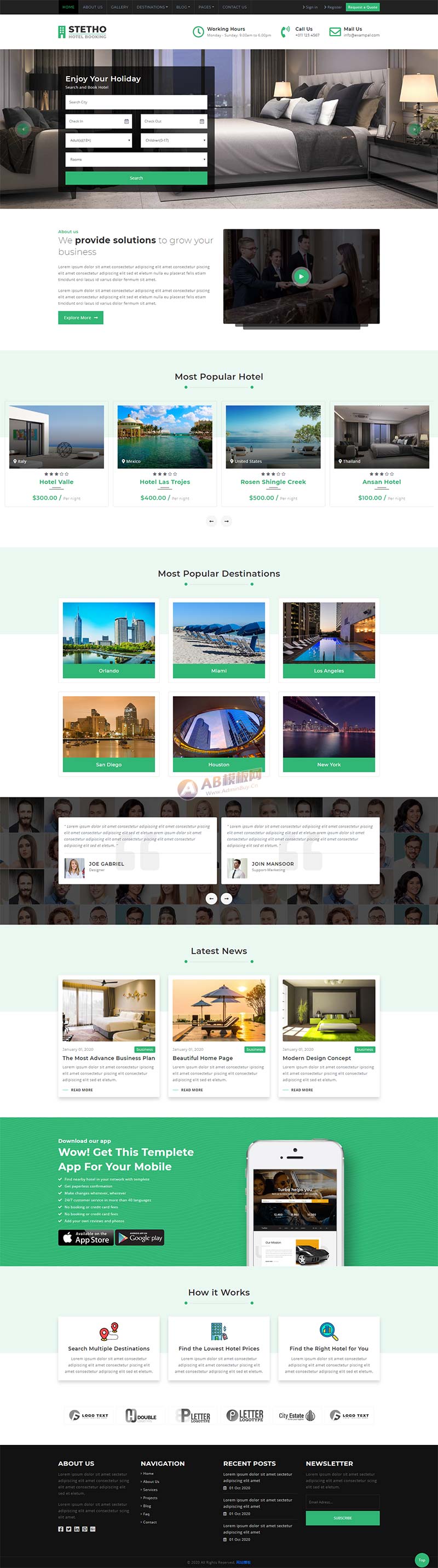 一款绿色的酒店预订、汽车旅馆、度假村、房间预订、旅行房间预订网站响应式模板。所有文件和代码都经过了良好的组织和良好的注释,以便于为您的新创建进行自定义修改。 下载地址 下载地址已转移到新版网站,请点击左上角-首页,在新版网站搜索此套源码的标题进行下载。